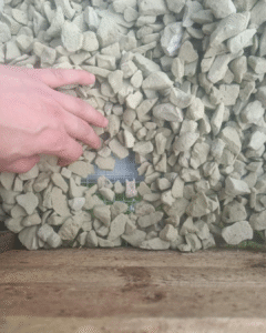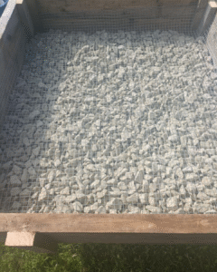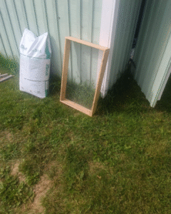 Det är viktigt att metallnätet har mindre maskstorlek än skumglasets kornstorlek, så att skumglaset inte faller igenom. Om skumglaset behöver siktas kan du bygga en enkel sikt med samma metallnät som används i flotten: sikt med samma storlek på metallgallret som på plattformen.