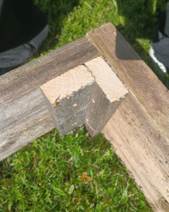 Färdig ram med förstärkta hörn eftersom två trästycken är fästa vid varandra på höjden