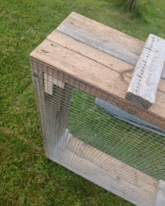 Bild ram gjord av värmebehandlat trä, sidan är 20 cm och gallret är fäst med träribba