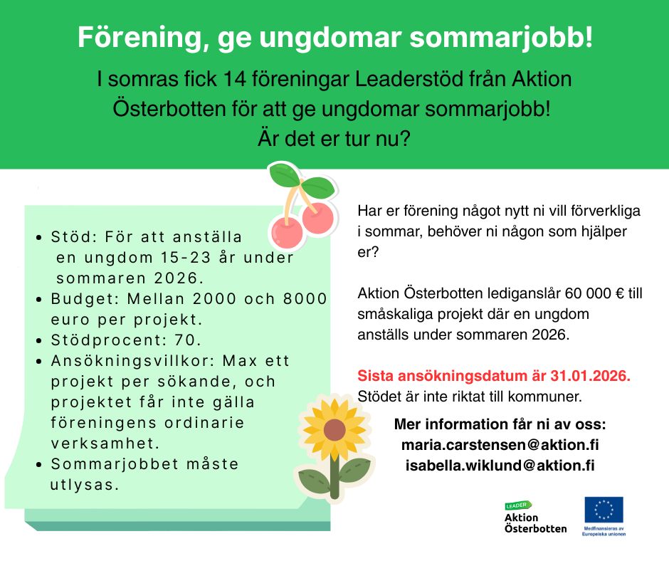Leader on osa Aktion Österbottenin toimintaa. LEADER-ryhmä on rekisteröity organisaatio, joka kannustaa alueensa asukkaita kehittämään paikallisyhteisöään, parantamaan sen hyvinvointia ja luomaan uusia työpaikkoja ja yrityksiä. LEADER-ryhmä rahoittaa hankkeita, jotka ovat yleishyödyllisiä ja edistävät taloudellista toimintaa yritystuen avulla maaseudun kehittämisrahaston tuella. Kullakin Leader-ryhmällä on oma maaseudun kehittämisstrategiansa.