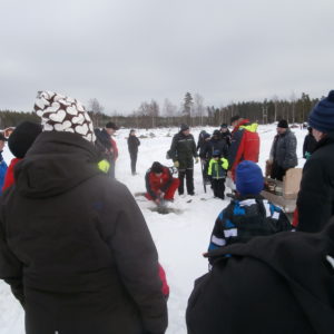 Fiskargillet demonstrerar nätfiske under isen