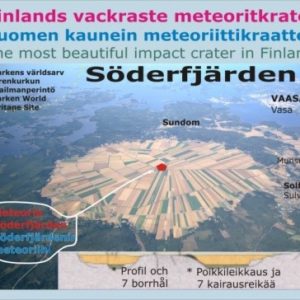 Mången betraktare från ovan har tjusats av Söderfjärdens gulgröna åkerrundel innanför en rund krans av randberg. “Finlands vackraste meteoritkrater” är 5-6 km tvärs över och mer än 300 meter djup, fylld med yngre sedimentbergarter, bl.a kambrisk sandsten. Tio andra kända spår av meteoritnedslag i Finland är vattenfyllda oregelbundna sjöar, föga kraterlika. Söderfjärden är en unik plats på jorden, eftersom endast 176 meteoritnedslag är kända på vårt jordklot.