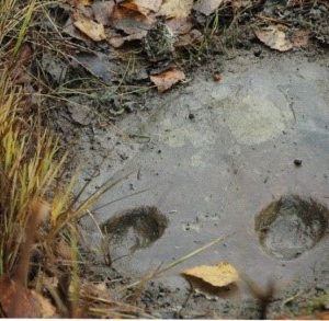 Ett par hundra meter västerut från hyddbottnen längs Västersvägen finns två skålformade gropar i ett plant sandstensblock. Stenblocket med groparna ligger i vägkanten invid ett några kubikmeter stort flyttblock. Platsen har fått namnet “kattfäälin och hondfäälin” efter groparnas form och storlek som påminner om avtryck efter en kattfot och hundtass. Det förefaller klart att groparna hackats ut av människohand och arkeologer anser att det kan vara gamla offergropar. När de tillkommit och varit i användning är omöjligt att säga och om ett samband med hyddbottnen kan man bara spekulera.
