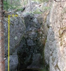 Är Kuckosteinin en tafone? Nästan nere vid Utteröfjärden och ett stenkast från Västersvägen ligger ett stort flyttblock med en grytliknande fördjupning. Flyttblocket är högt som ett tvåvåningshus och kallas för Kuckosteinin. Hålan i stenen ligger nere vid marken på den västra väggen. Fördjupningen har en diameter på 80-90 cm och ett lika stort djup. På bilden ligger en tumstock över öppningen. Hittills har håligheten tolkats som en liten jättegryta, som i så fall skulle ha uppkommit innan flyttblocket av inlandsisen placerades i sitt nuvarande läge.
