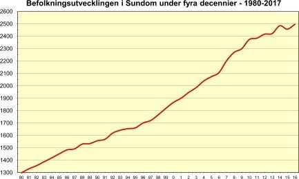 Sundom är en tillväxtby. På trettio år – från år 1980 till år 2010 växte invånarantalet med över 1 000 personer – från ca 1 300 till ca 2 400. Tillväxten var över 80 %, och den har fortsatt fram till idag med undantag för en liten nedgång år 2015. Få orter i vårt land kan uppvisa en sådan expansion.