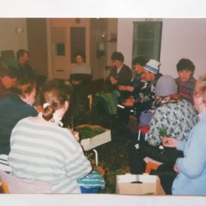 Och nu kommer talkogänget som hållit ekonomin i liv, utan dessa julkransbindarkvällar och försäljning har föreningen inte överlevt.