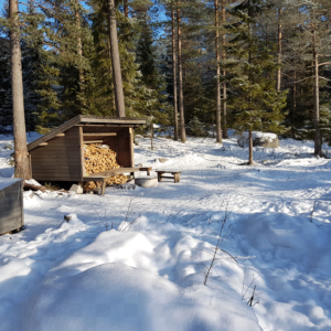 Grillplatsen vid Lodeträsk, intill vandringsleden och skidspåret.