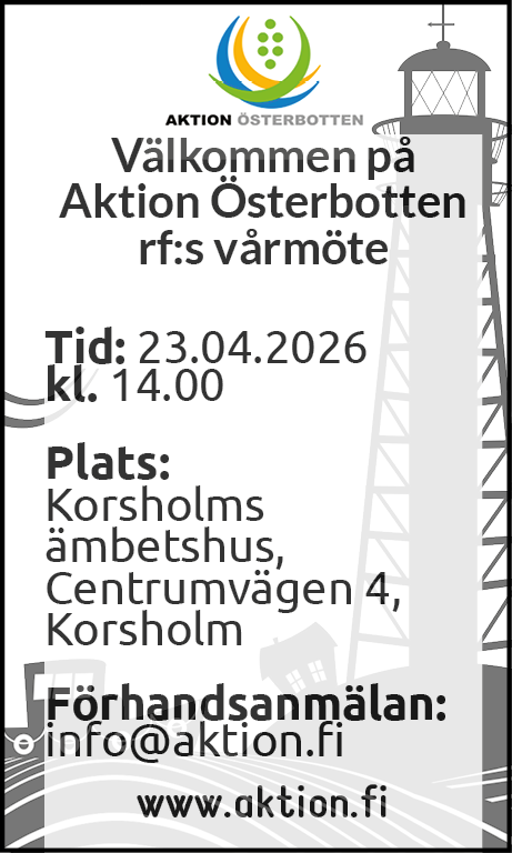 Medlemmarna i Aktion Österbotten r.f. kallas härmed till stadgeenligt vårmöte 23.04.2026
